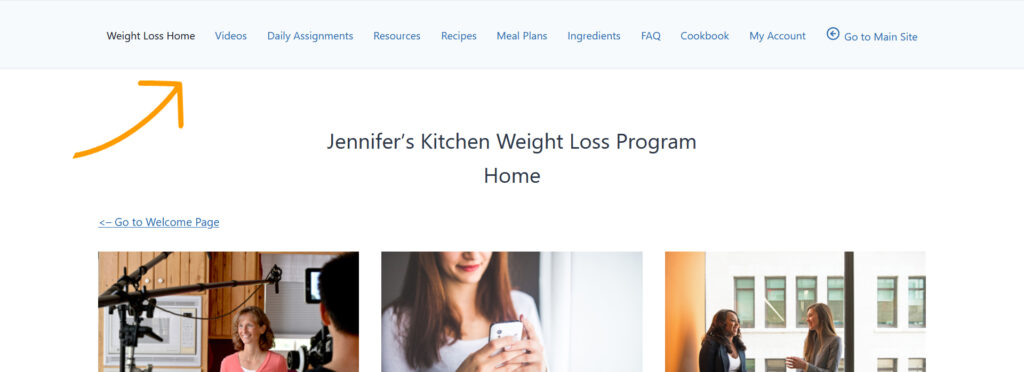 Use that navigation menu to go wherever you want to go in the program. OR go to the Weight Loss Program Home page to choose where you want to go.